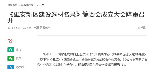 入编《雄安新区建设选材名录》